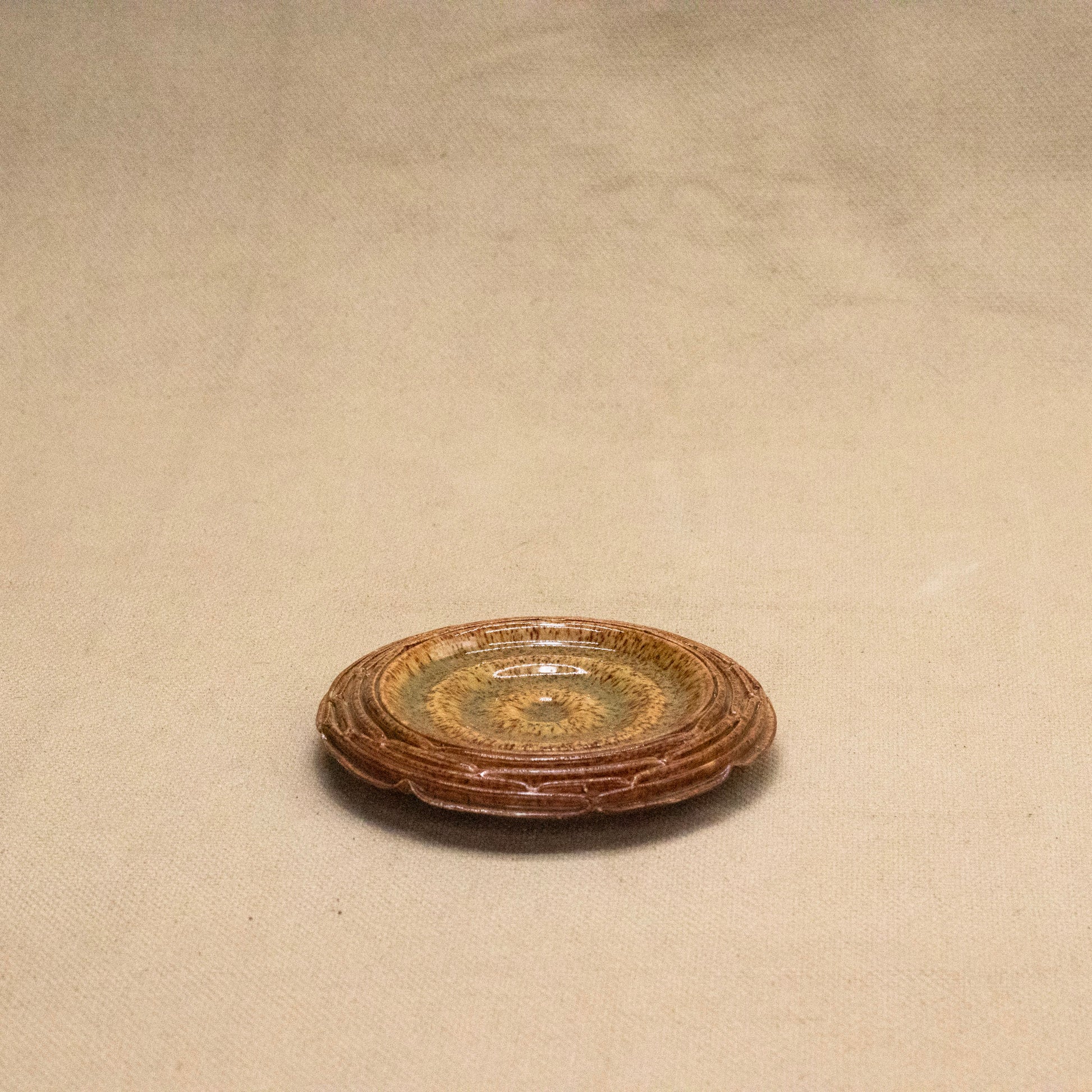 A small orange trinket tray! Measures 3.75" in diameter.