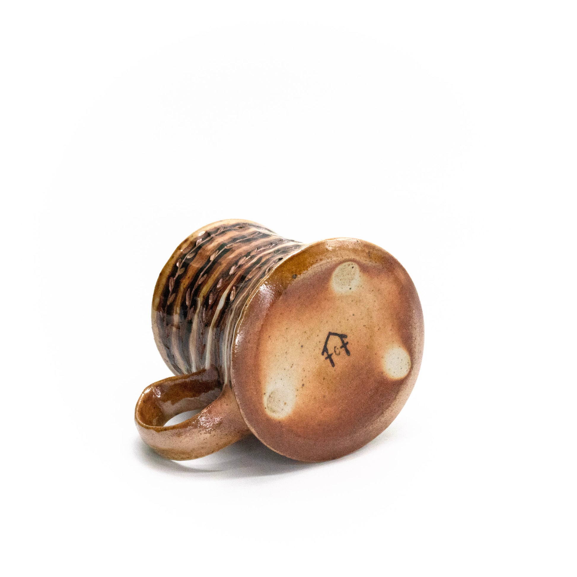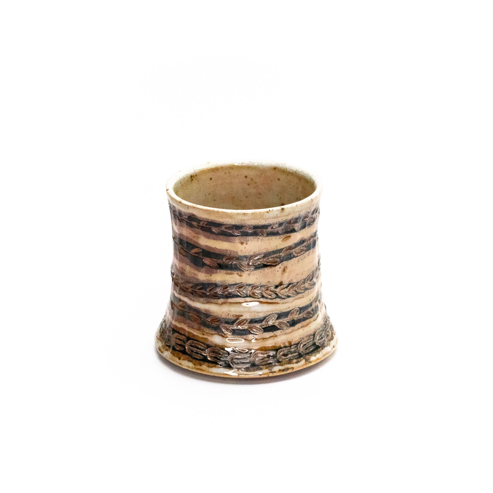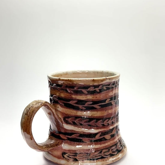 Wheel thrown, painted, carved, woodfired to cone 10 - 3.25 x 4.5 x 3.25in