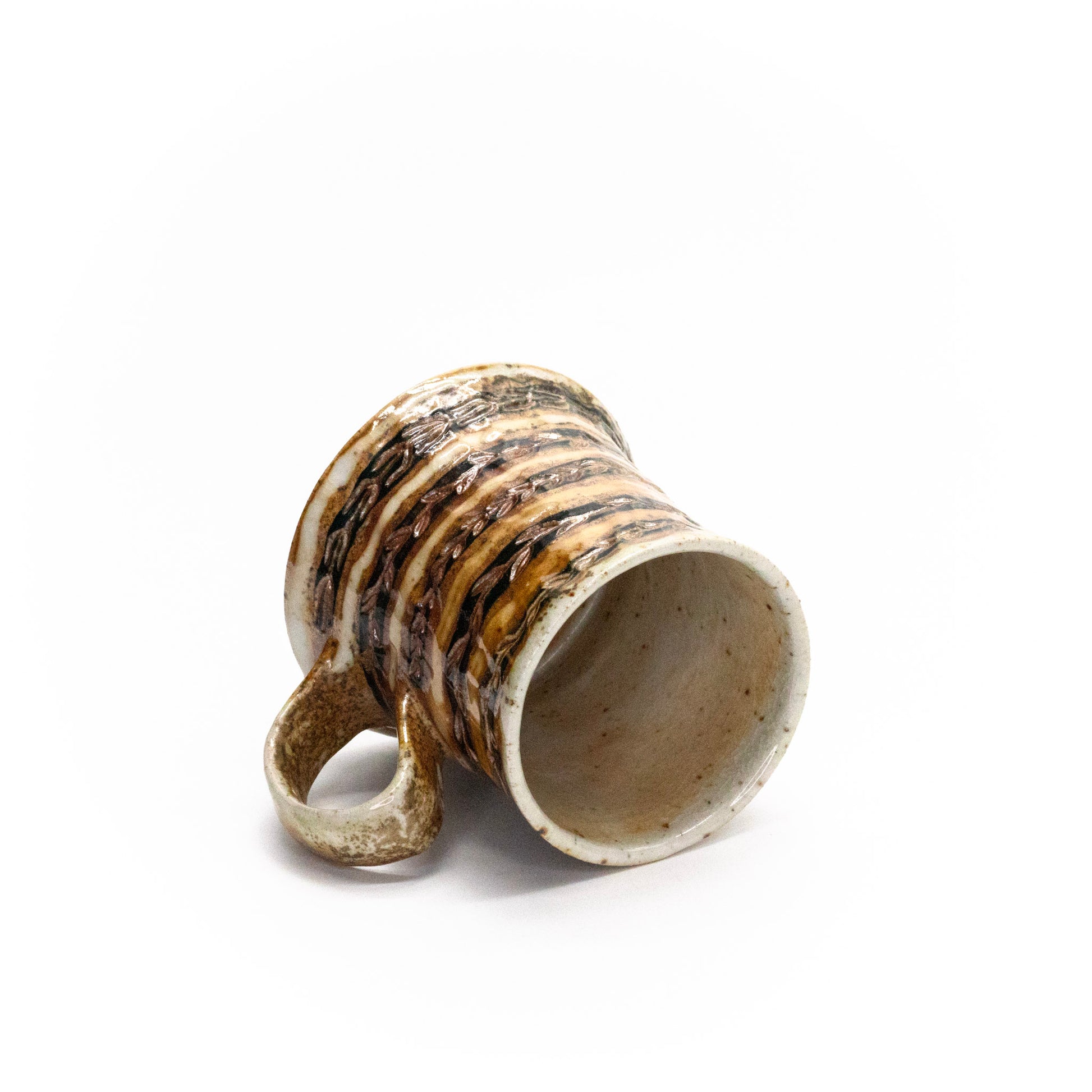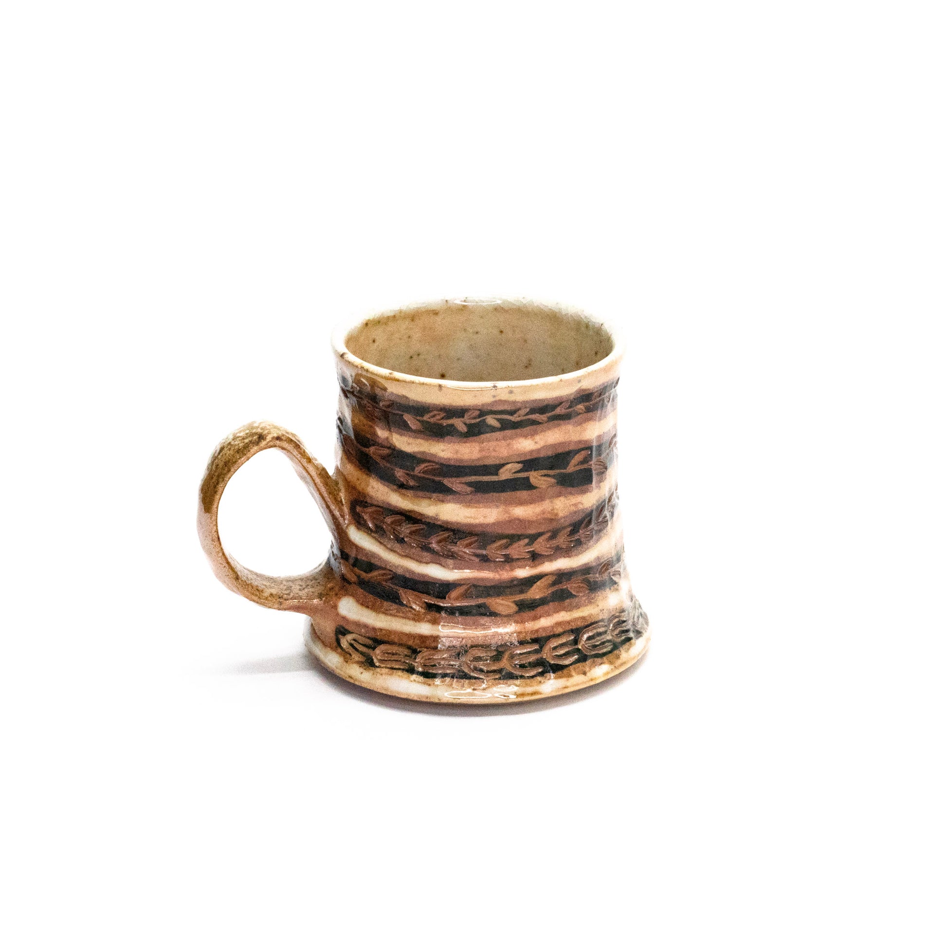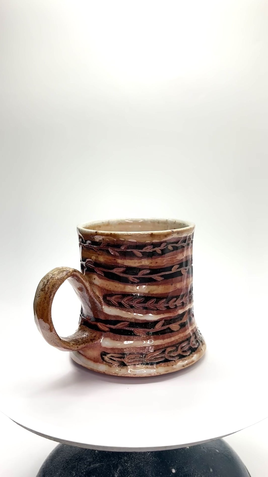 Wheel thrown, painted, carved, woodfired to cone 10 - 3.25 x 4.5 x 3.25in