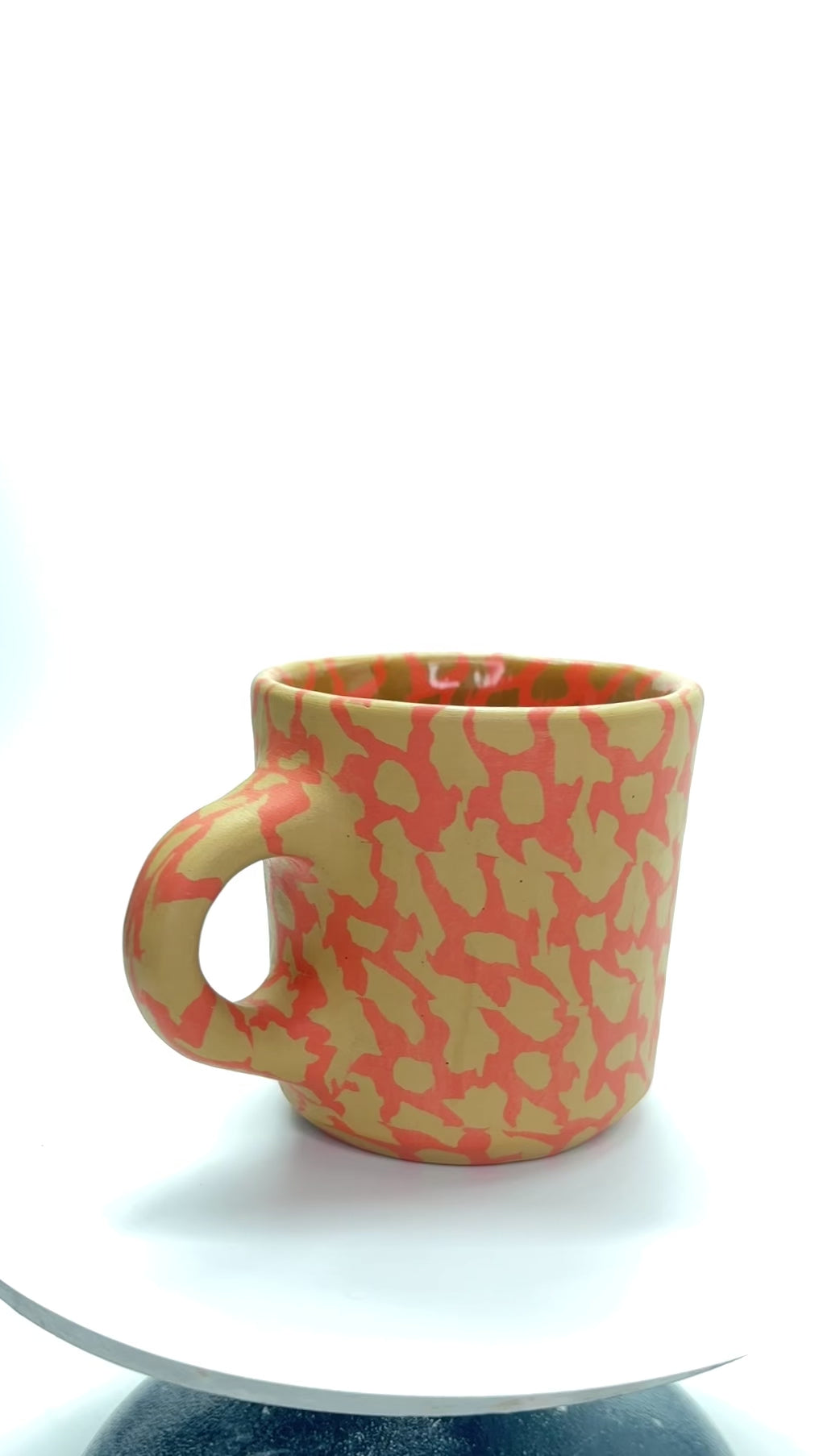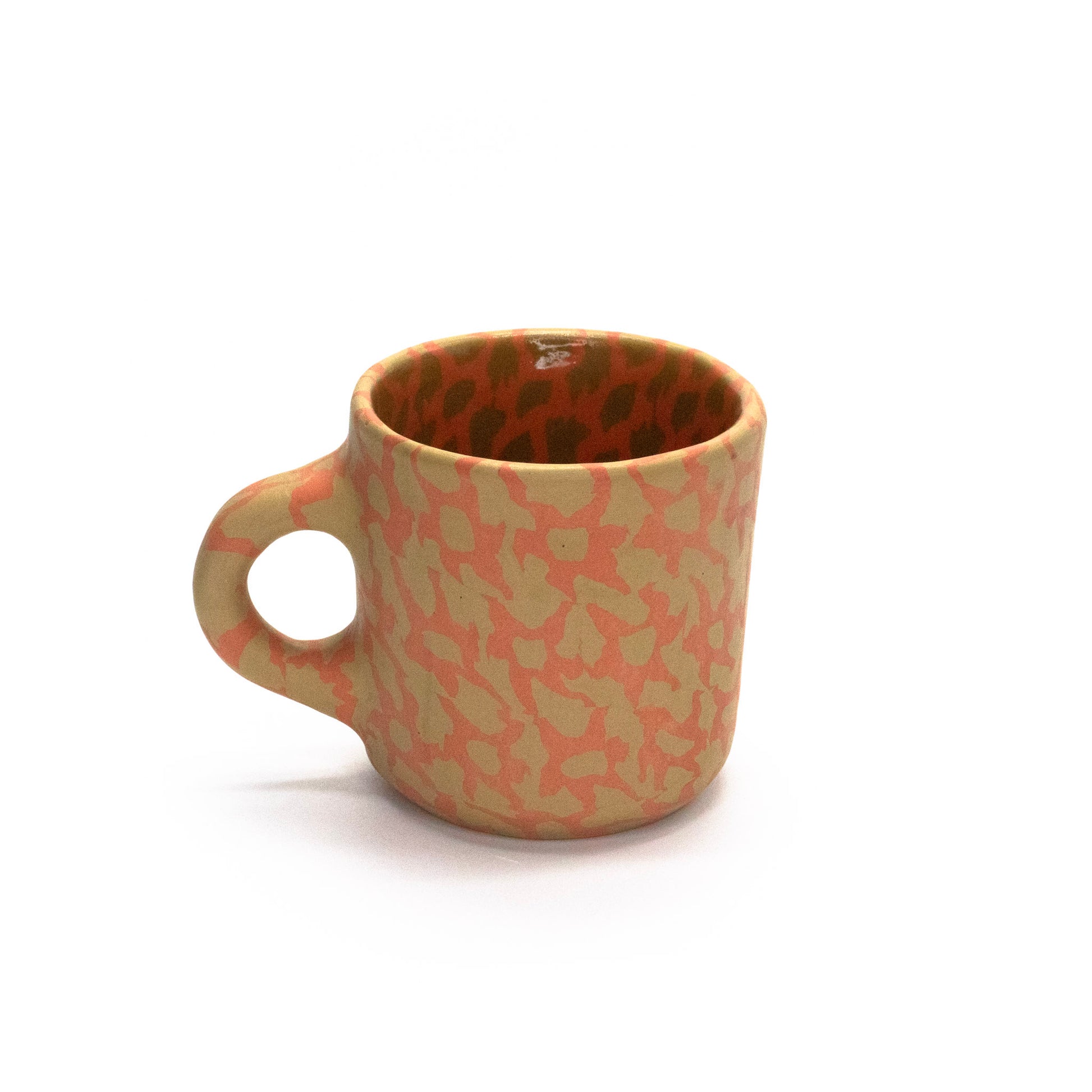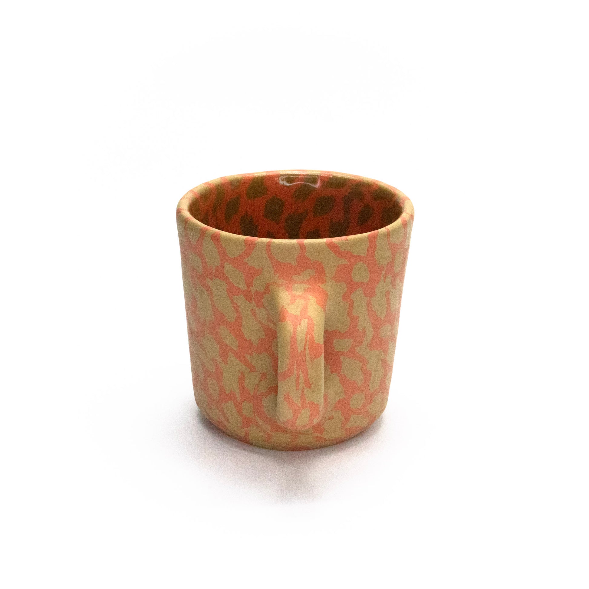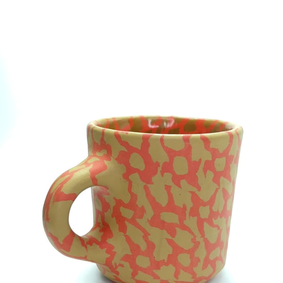 pinched nerikomi mug, holds 8oz, fired to cone 6, glazed interior, raw clay exterior