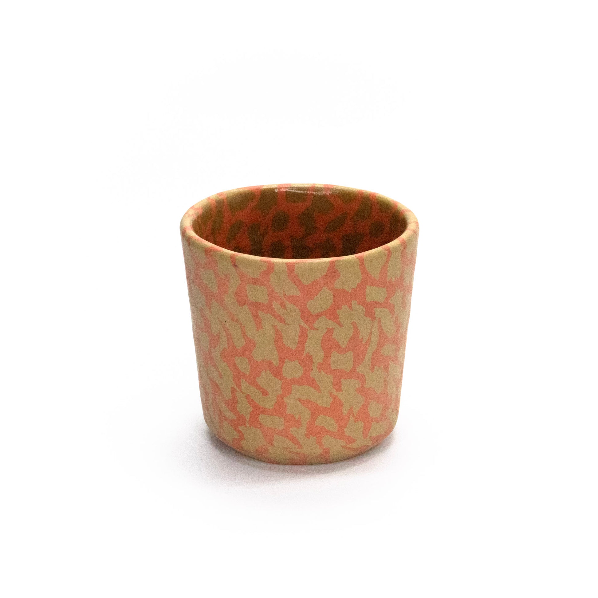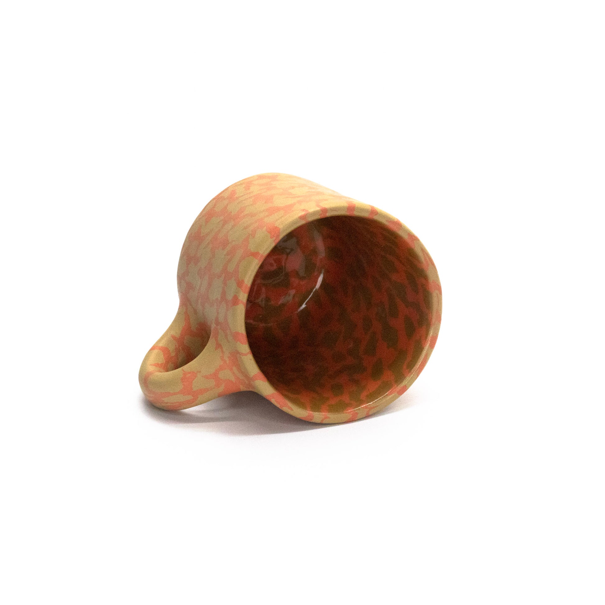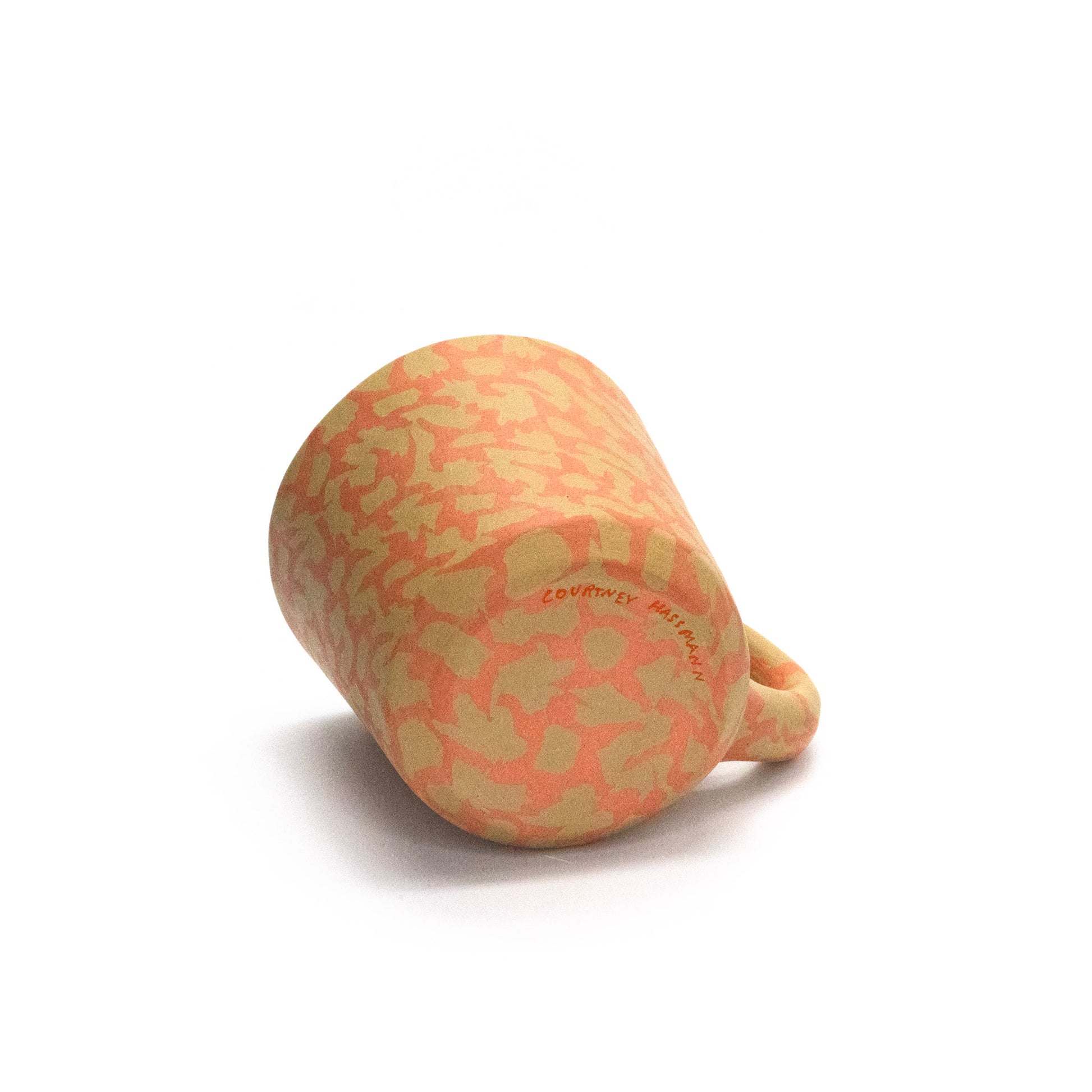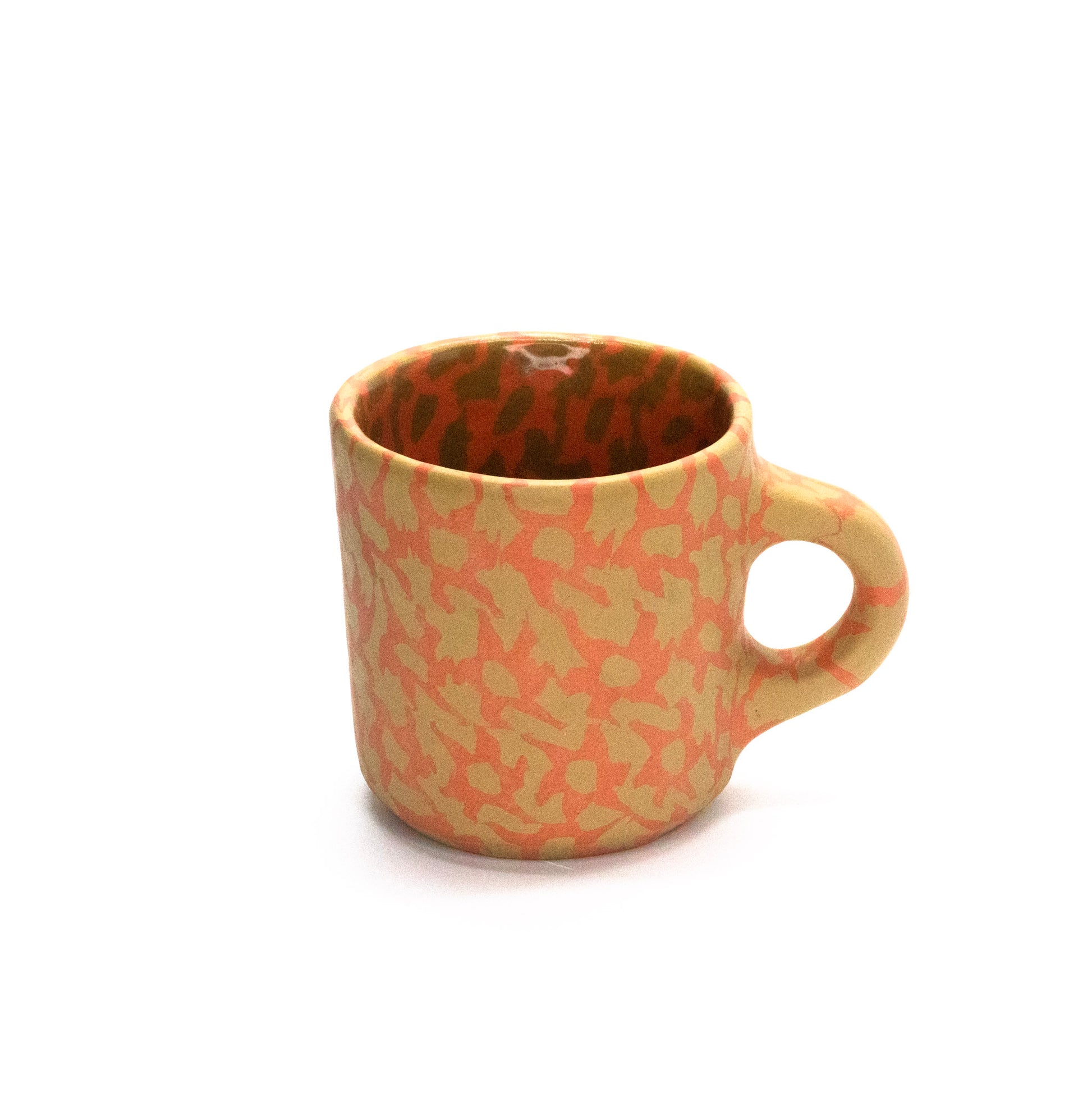 pinched nerikomi mug, holds 8oz, fired to cone 6, glazed interior, raw clay exterior