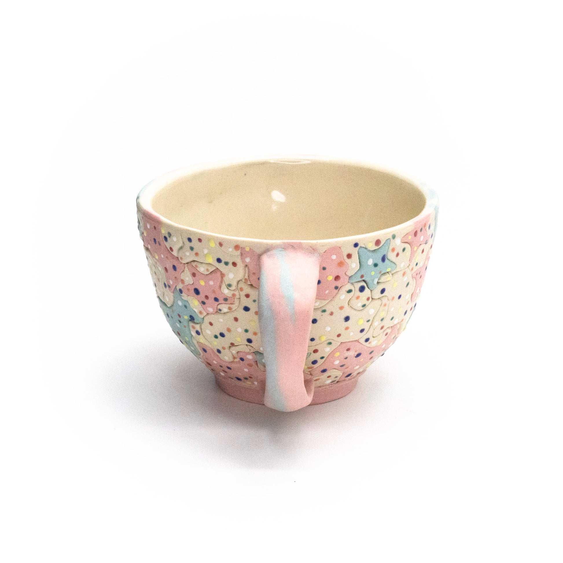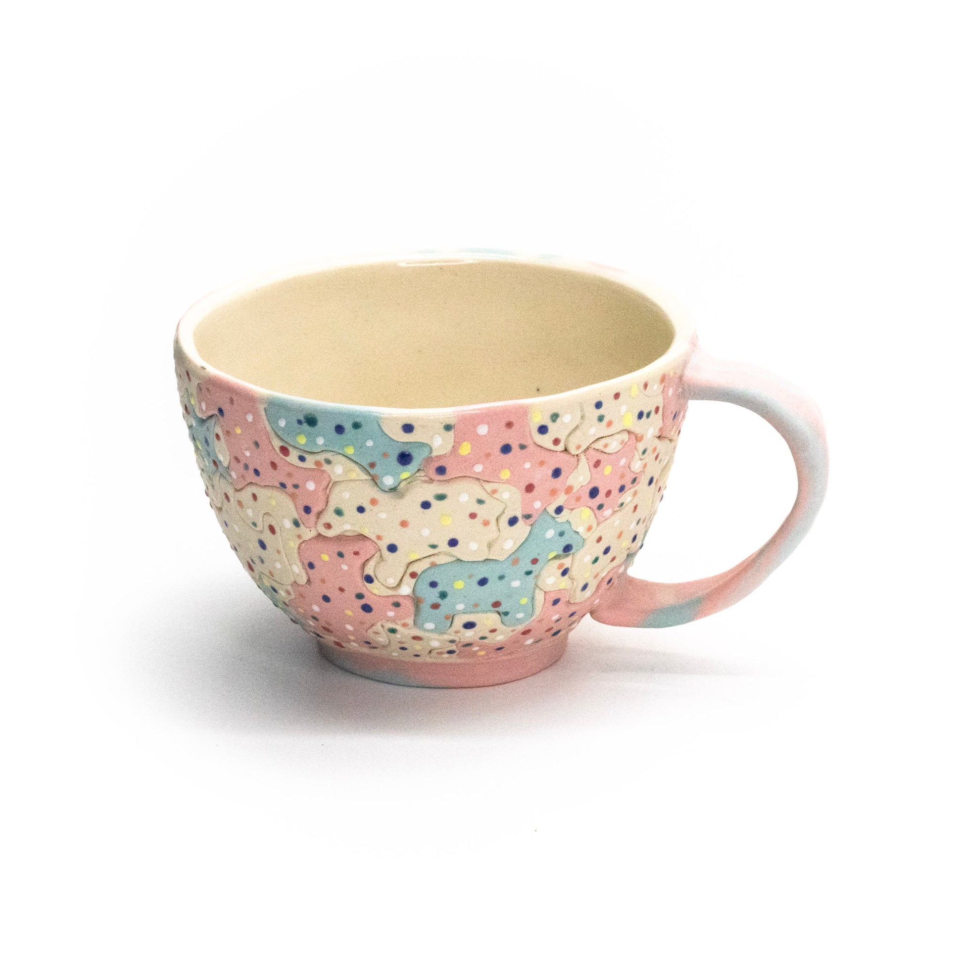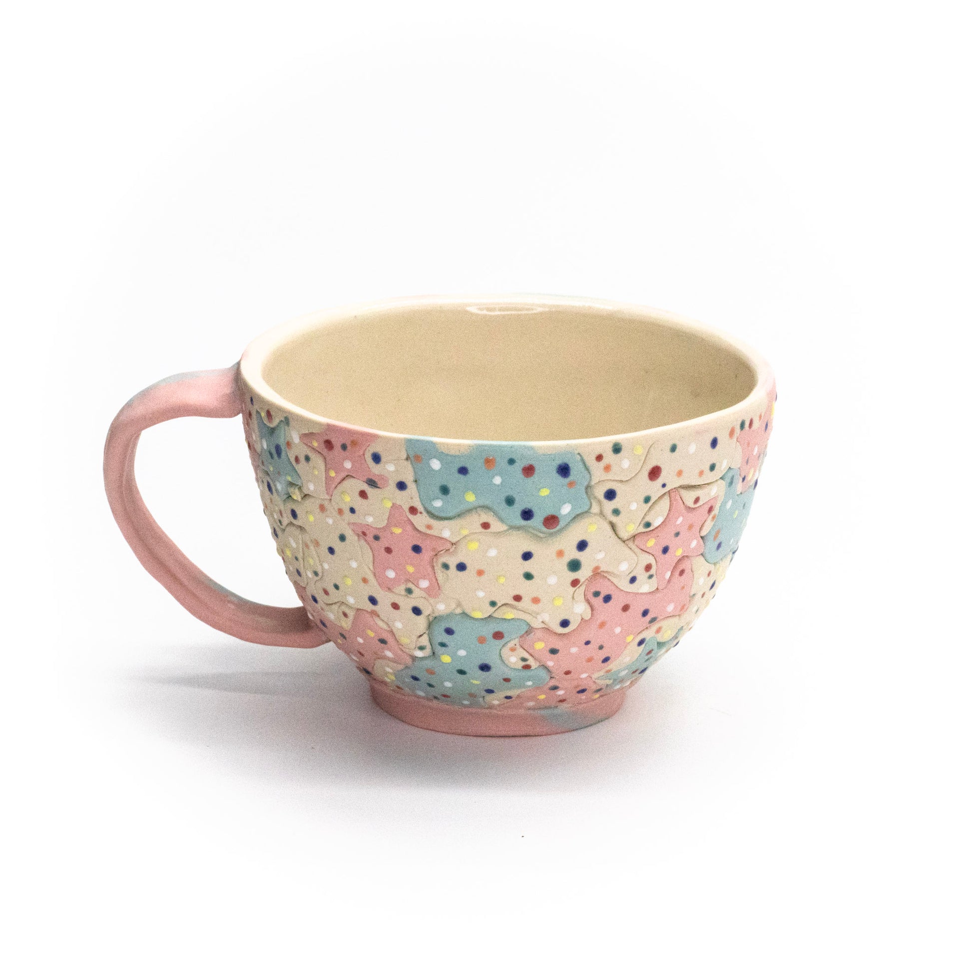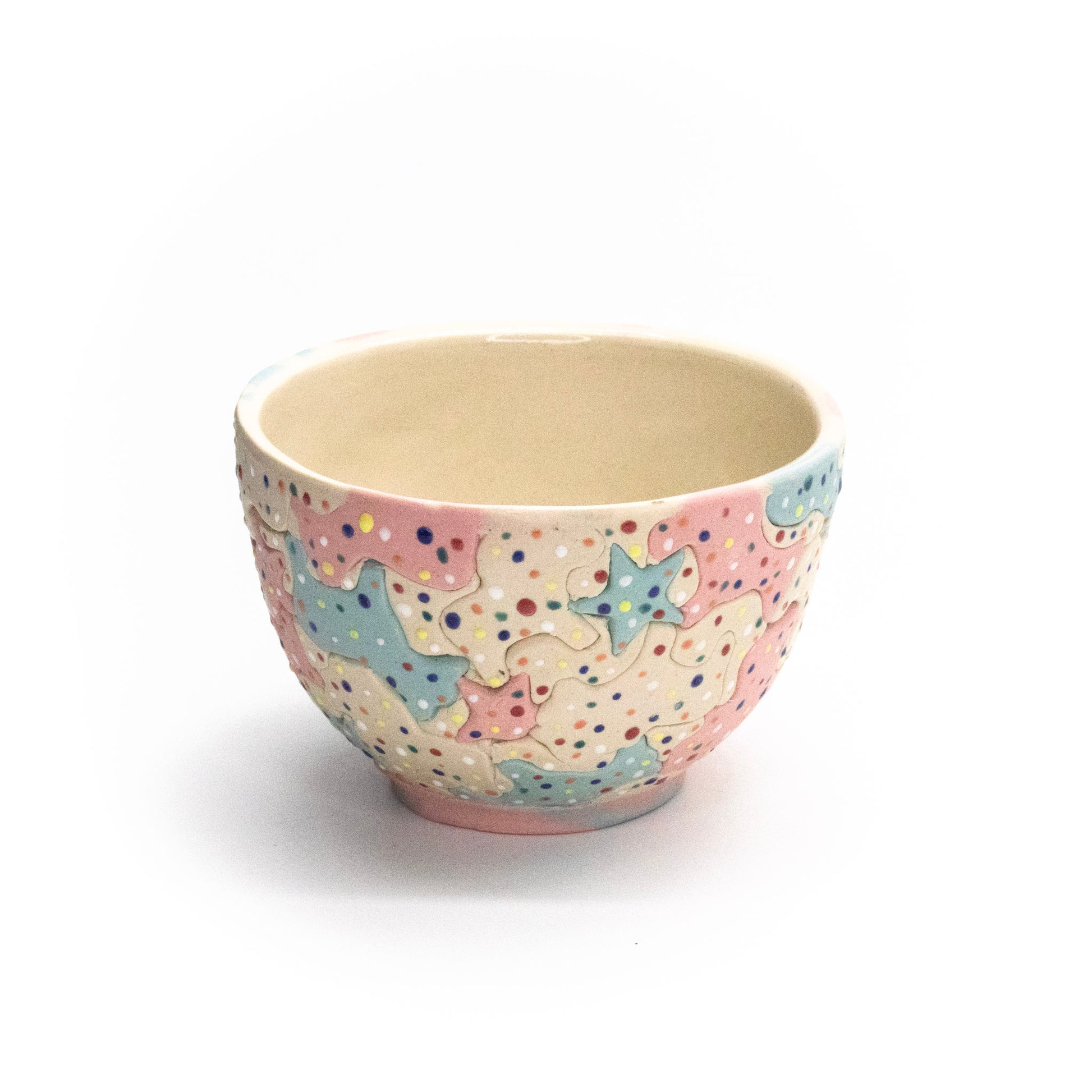 Hand built. Stained porcelain, cone 6 oxidation. 3.5x3.5x3.5in 12 oz
