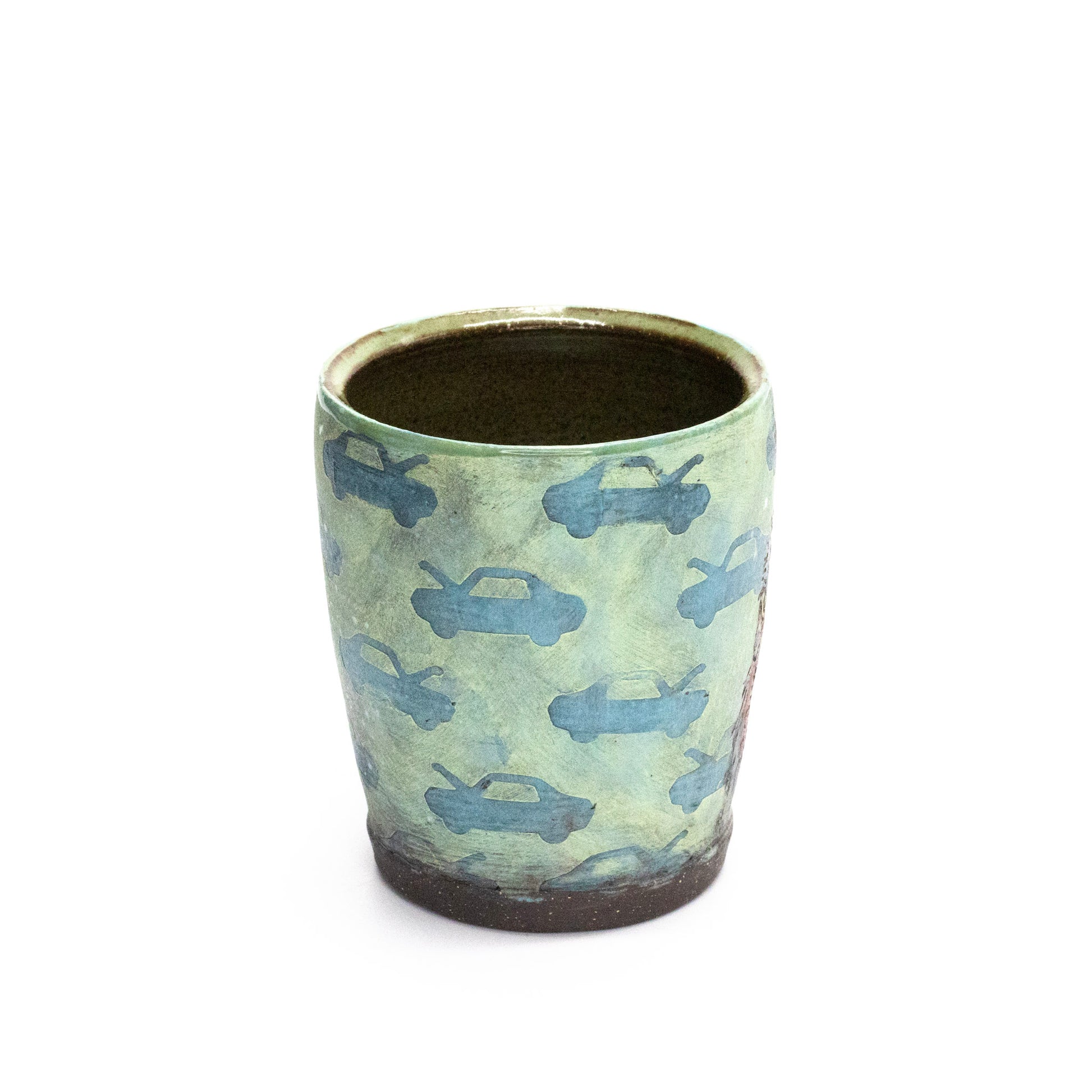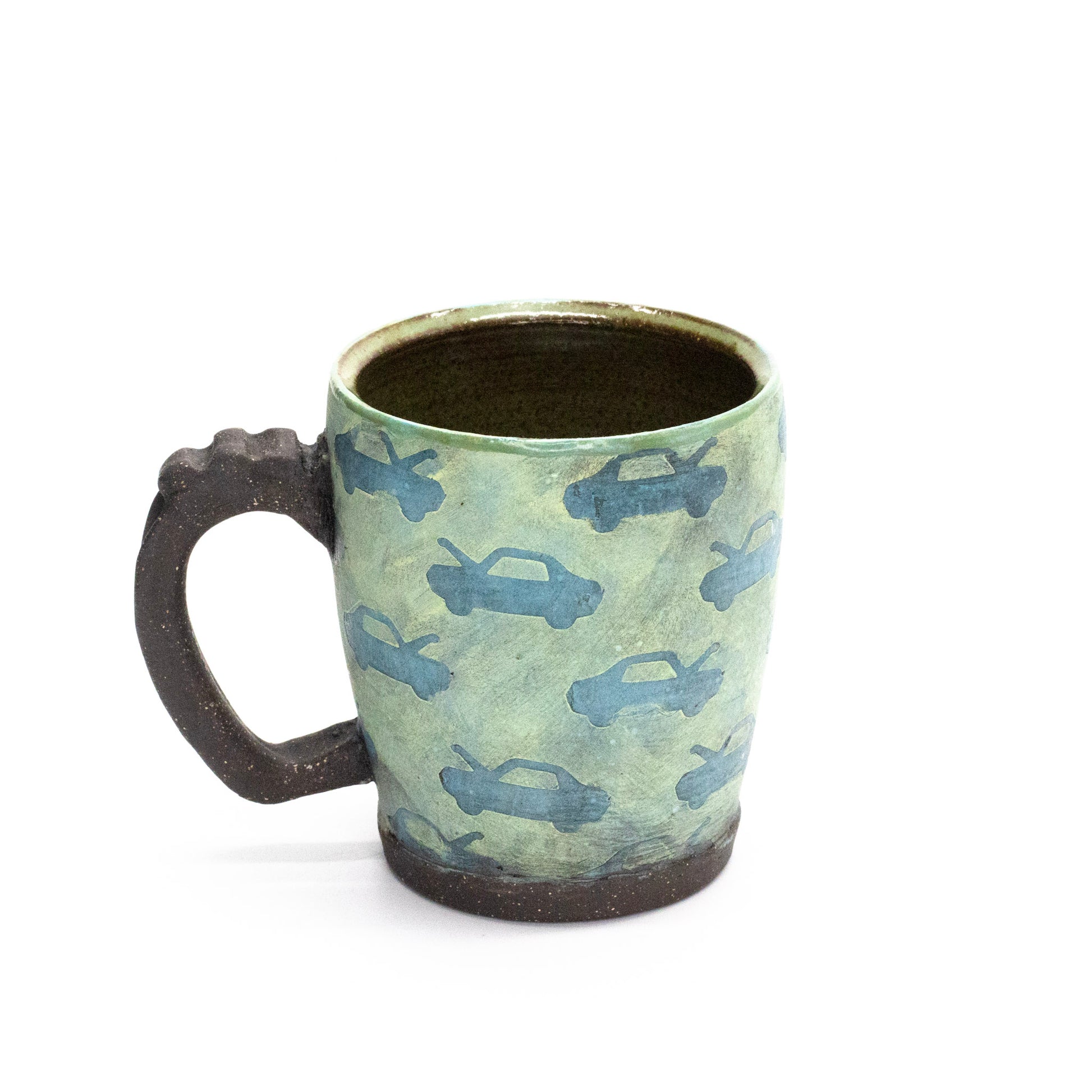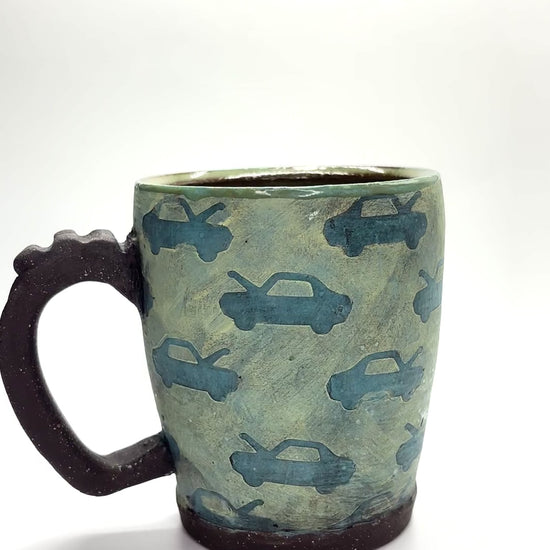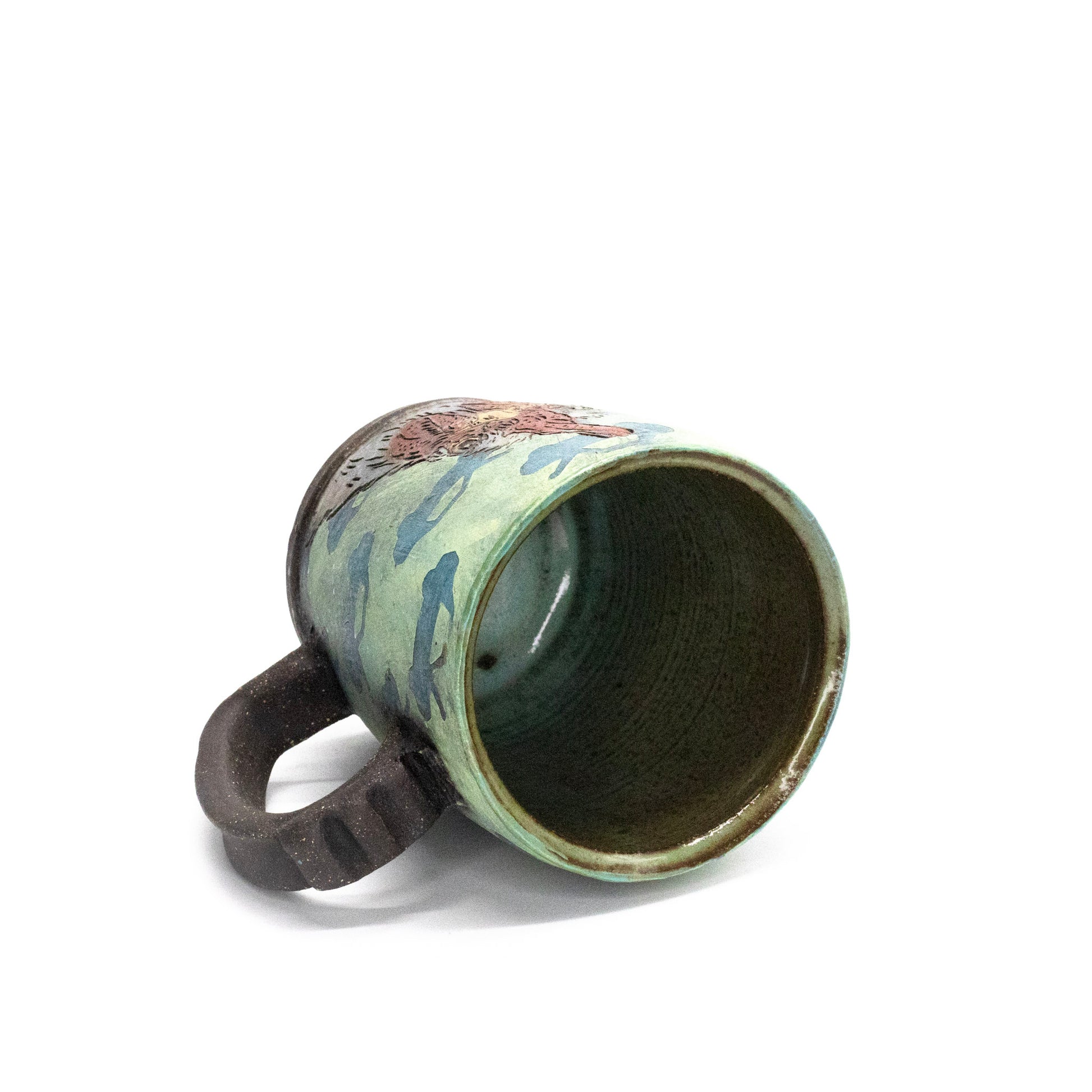 Dark stoneware, fired cone 6 oxidation, 3.5x5x4, 12oz