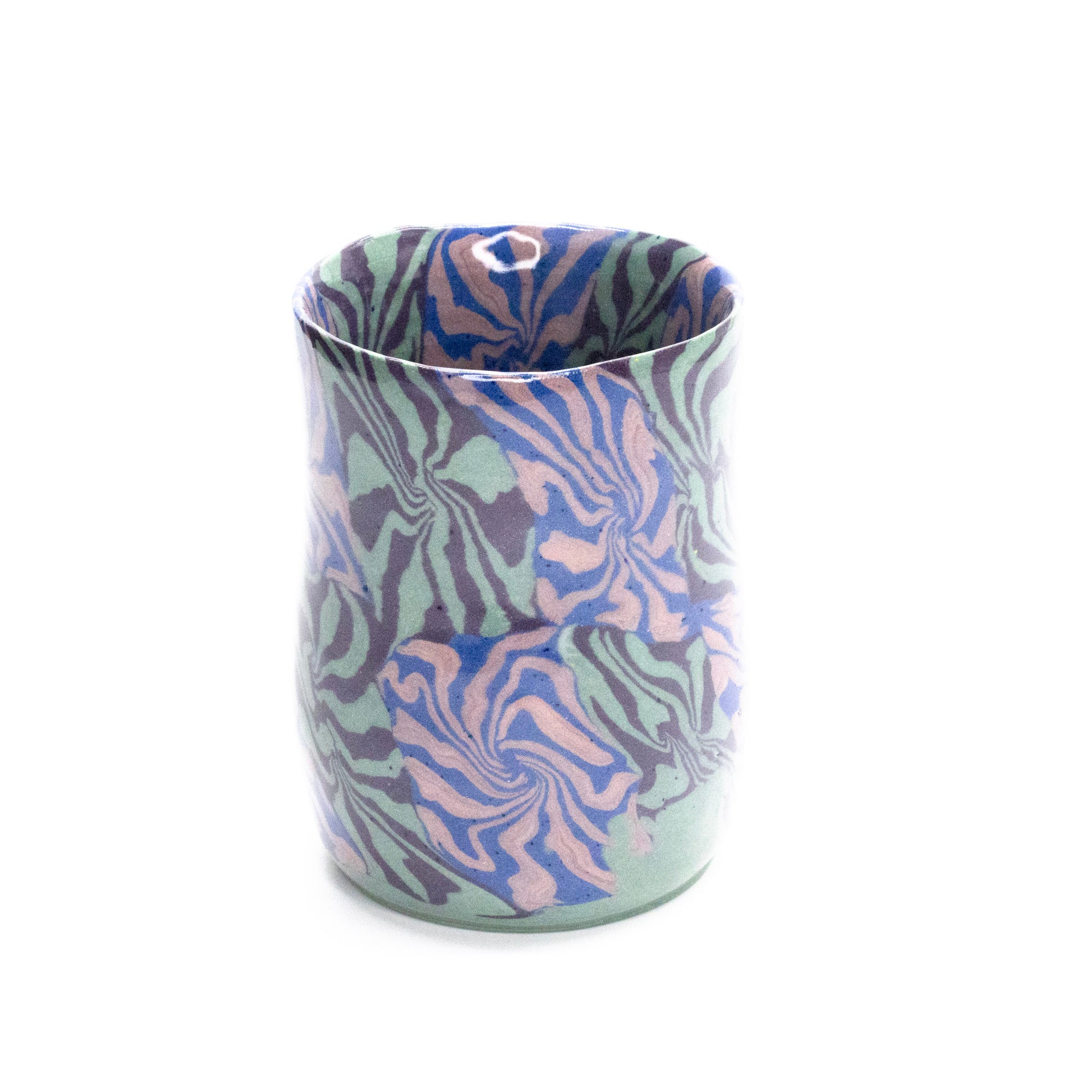 Mason Stained porcelain, clear glaze, 4.5in h x 5.5in w, cone 6 electric, 12 oz - made with wheel thrown nerikomi canes