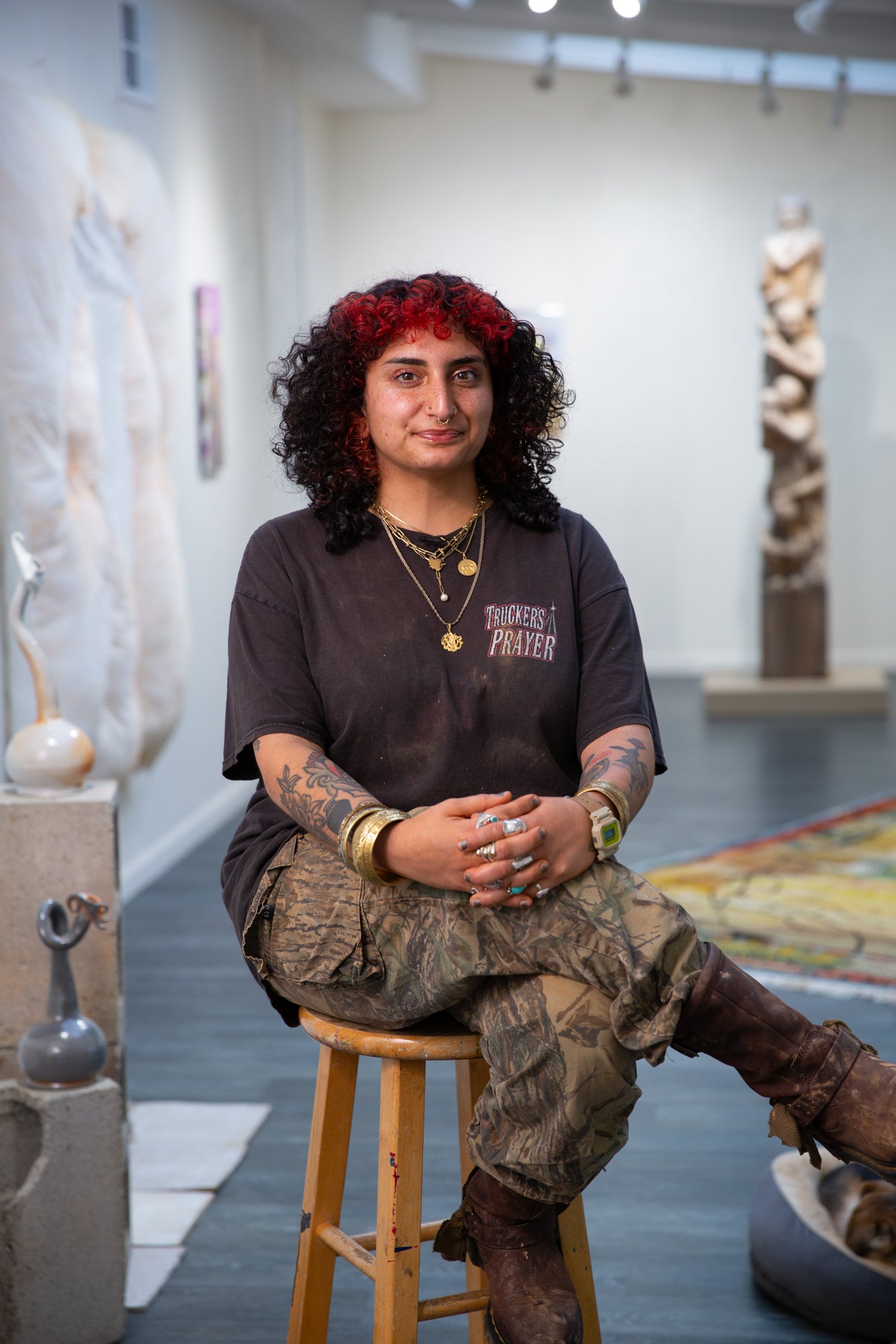 Zahra Hooshyar is a first generation, Iranian-american interdisciplinary artist hailing from west virginia. Her work often reflects on what it means to be a third culture individual, and she uses humor and appropriation of everyday objects to convey that gray space of existence. Graduating from the University of California- Davis with a Bachelors in studio art and persian studies in 2022, Hooshyar has since been living a nomadic lifestyle of moving around the world for residencies. Currently, she is based in Detroit.